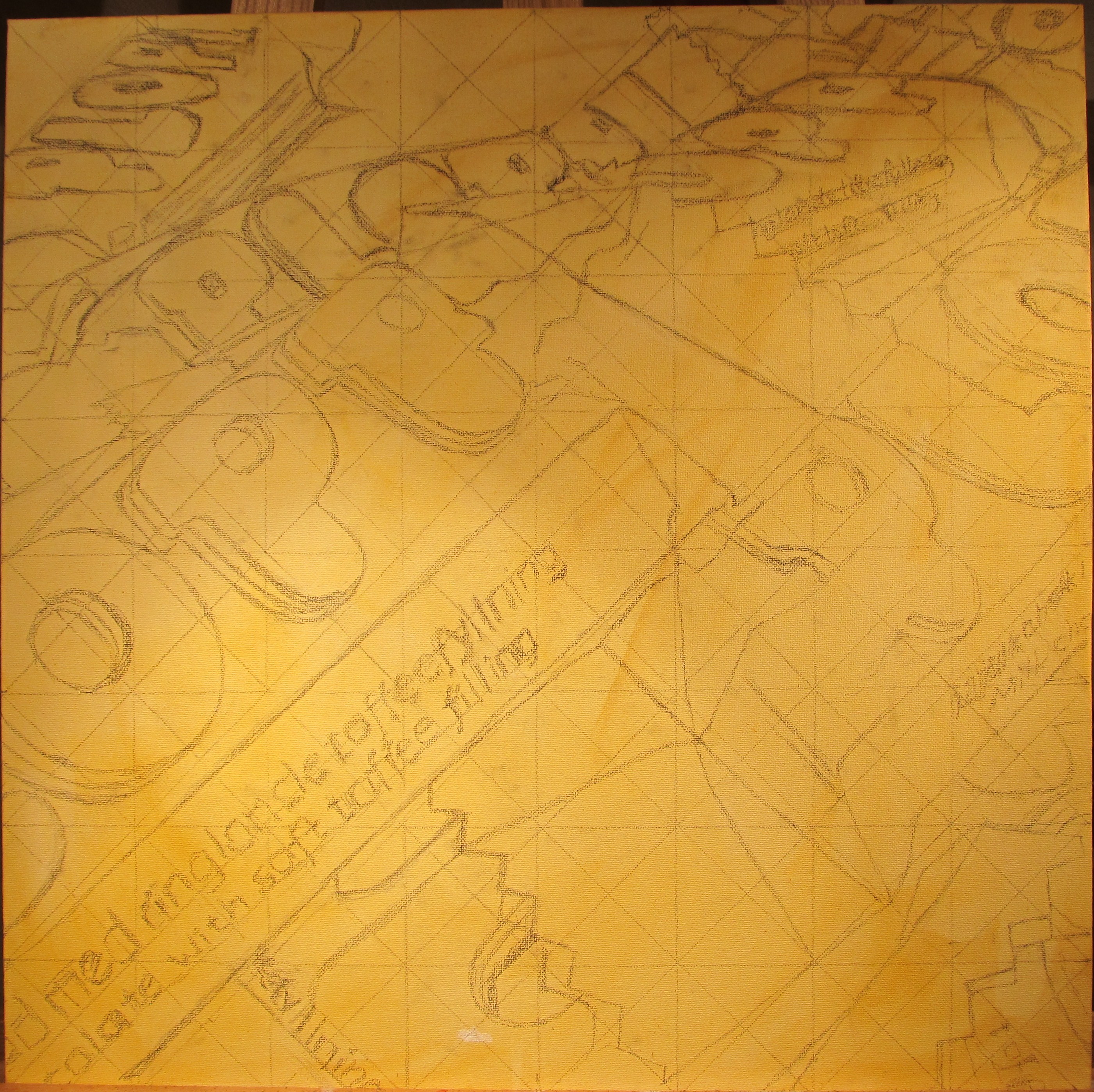 Så här inspirerande och glamoröst kan det se ut (långt) innan ett mästerverk är färdigt. Gultondad duk och kolskiss. Uppdatering kommer så småningom :)