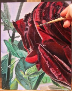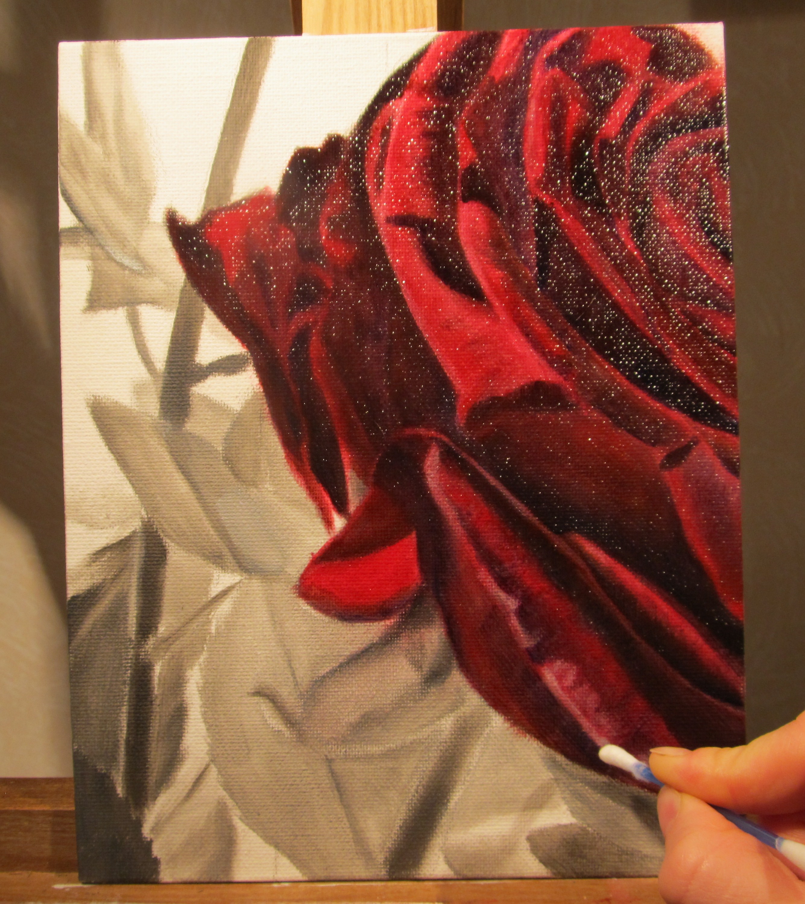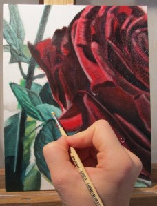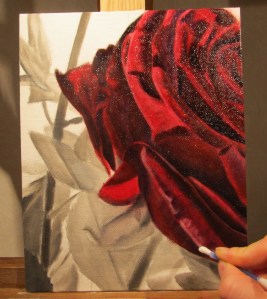 Börjar måla förstärka highlightsen på rosen. Se vilken skillnad!
