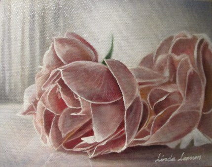 Now I’m finally finished with two small floral paintings that I’ve been building up with glazes.