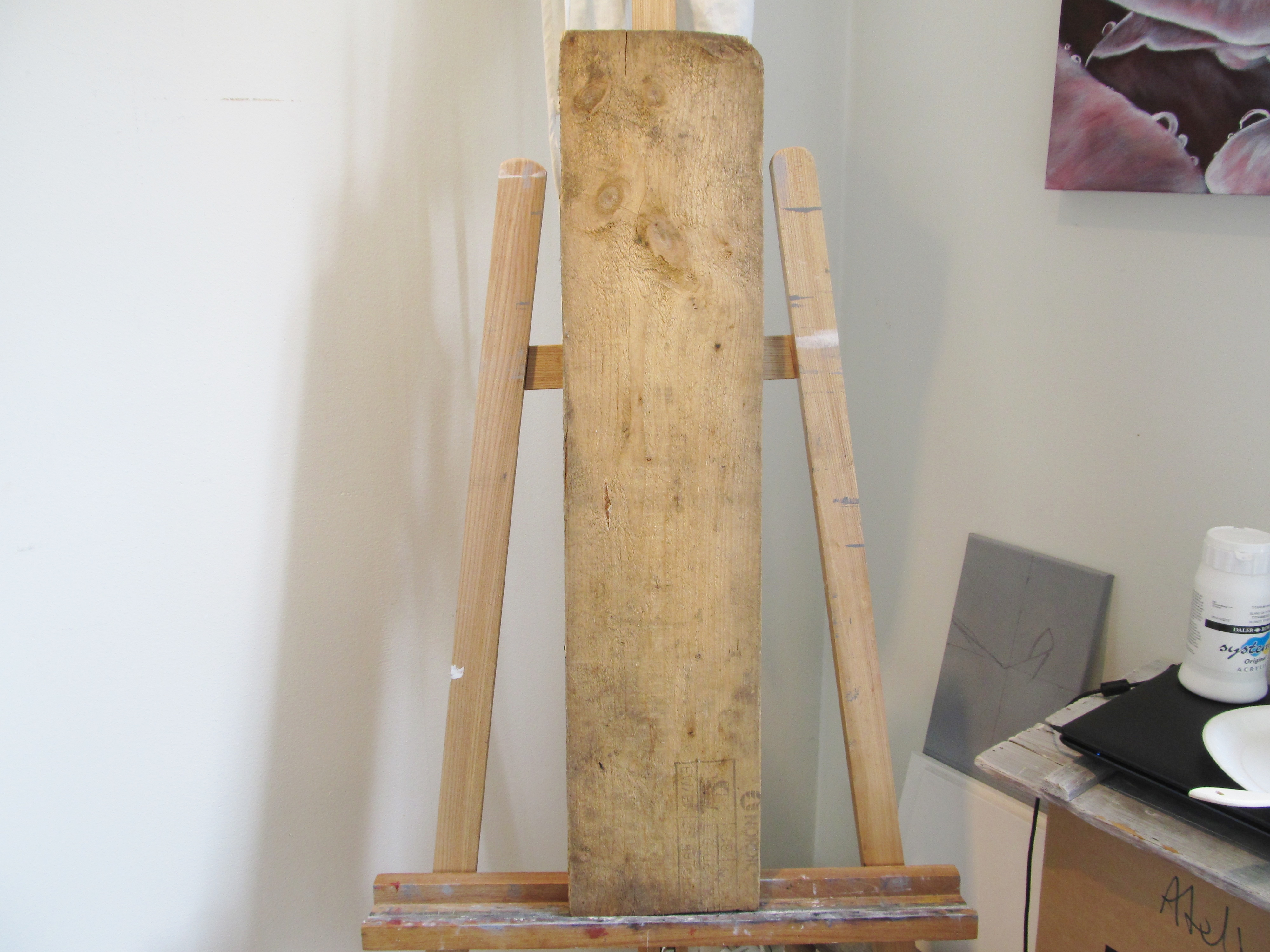 ”Empty Grave” 1500 SEK, Akryl på ohyvlad träbräda, 17,5×79 cm,