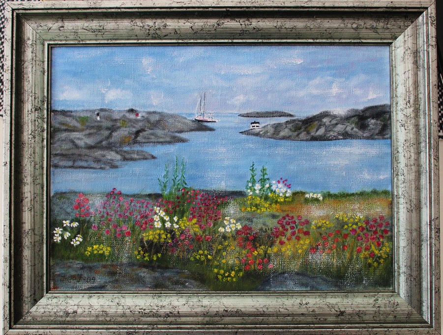 Just nu är vi på besök hos min lillasyster med familj i Jönköping. Vi passar på att bo i mina föräldrars lägenhet, då de själva är bortresta. Här hänger några av min farmors målningar. Hon är nämligen en fantastisk konstnär :) <3 Så nu passade jag på att fotografera de som hänger här hos mina föräldrar. Hon har målat många fler, som hänger både här o där hos släkten. Jag borde nästan göra en rundresa o fota rubbet. Hon förtjänar verkligen lite publicitet.