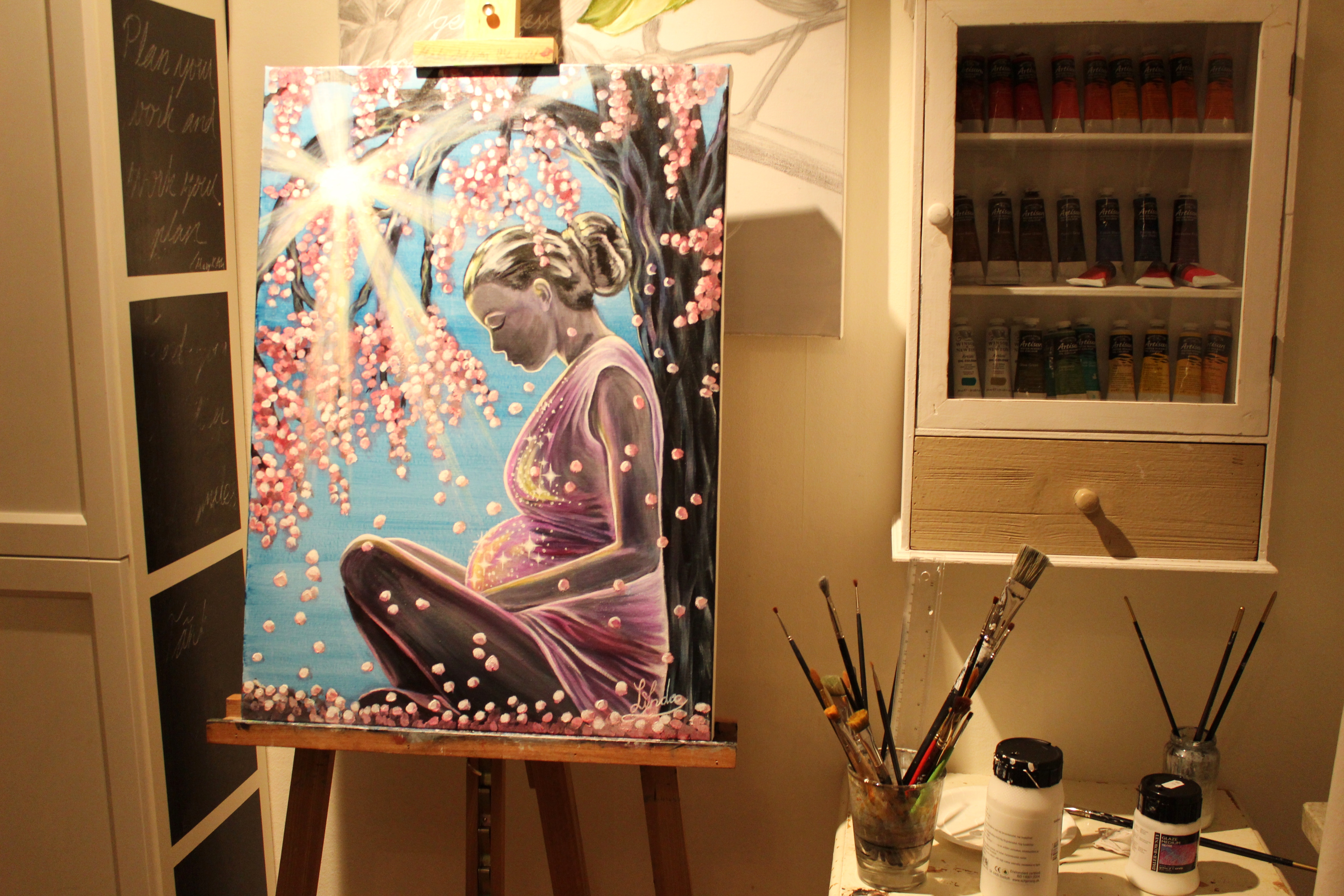 - ”Remembering my days of bloom, I carried you to Life” 1500 SEK, 70 x 50 cm, acrylic on 3D canvas, black sides