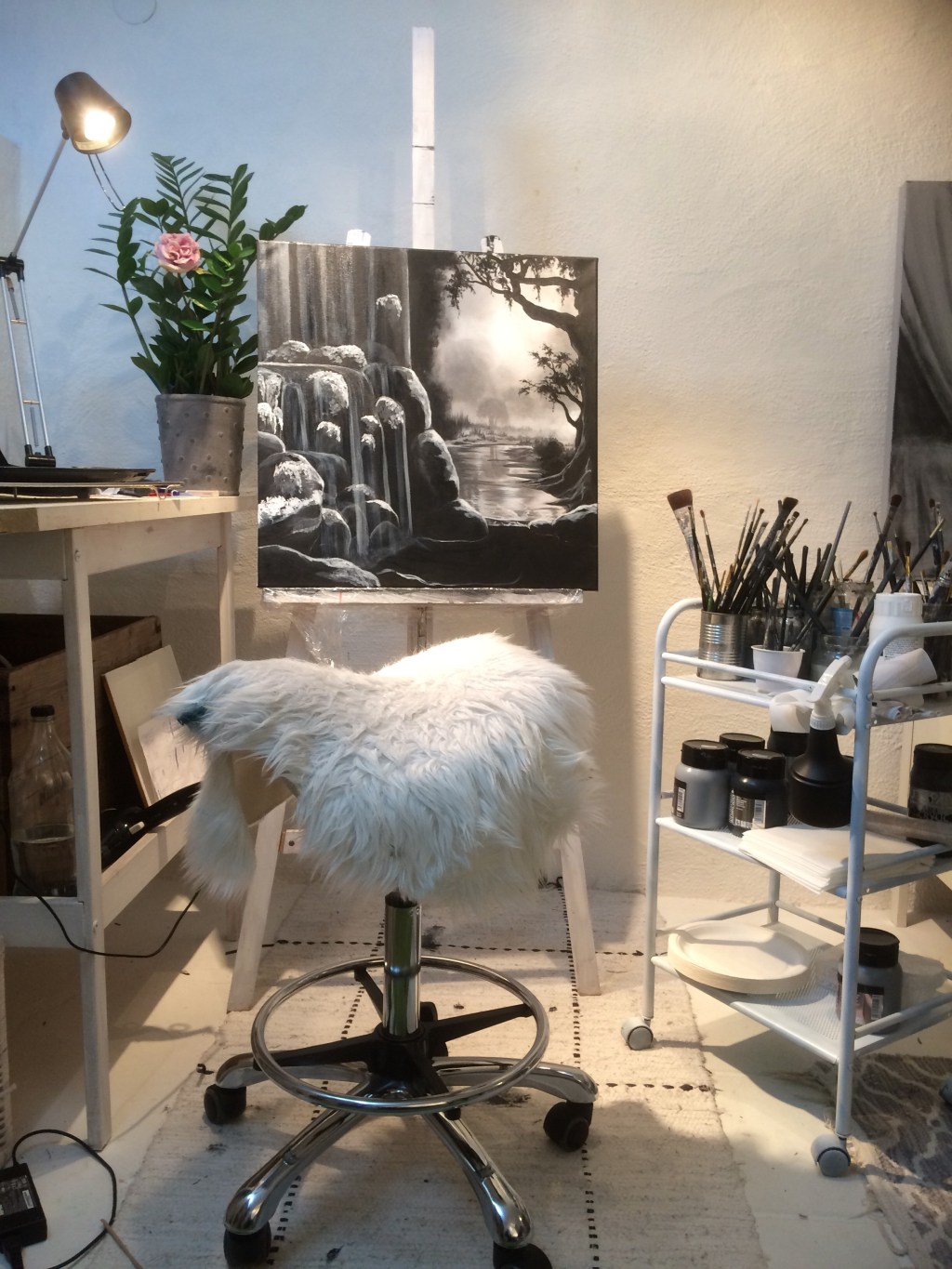 Detta är vyn från min sköna fåtölj i studion. Jag är så trött. Ett av våra barn var vaken en del inatt zzzz
