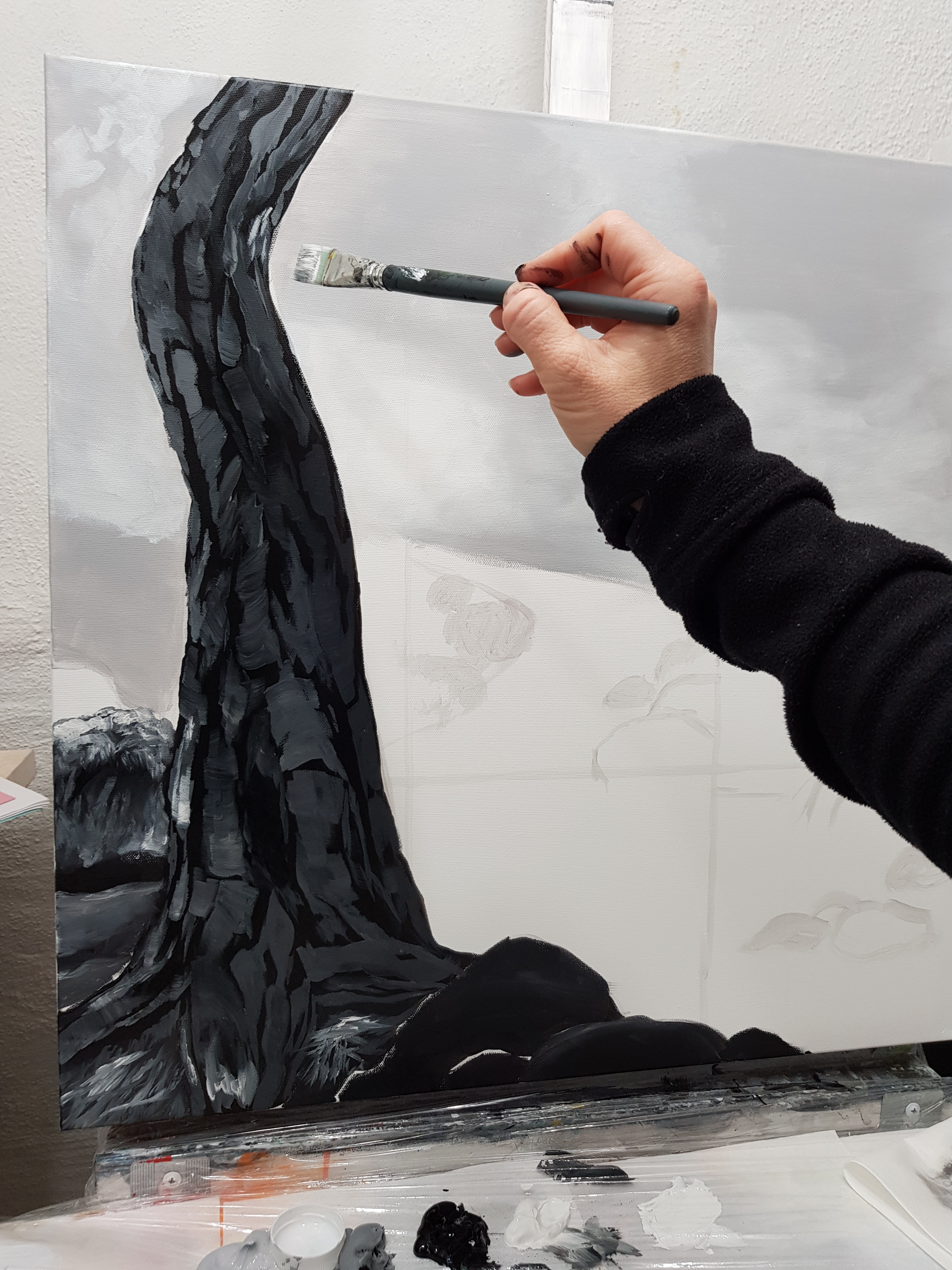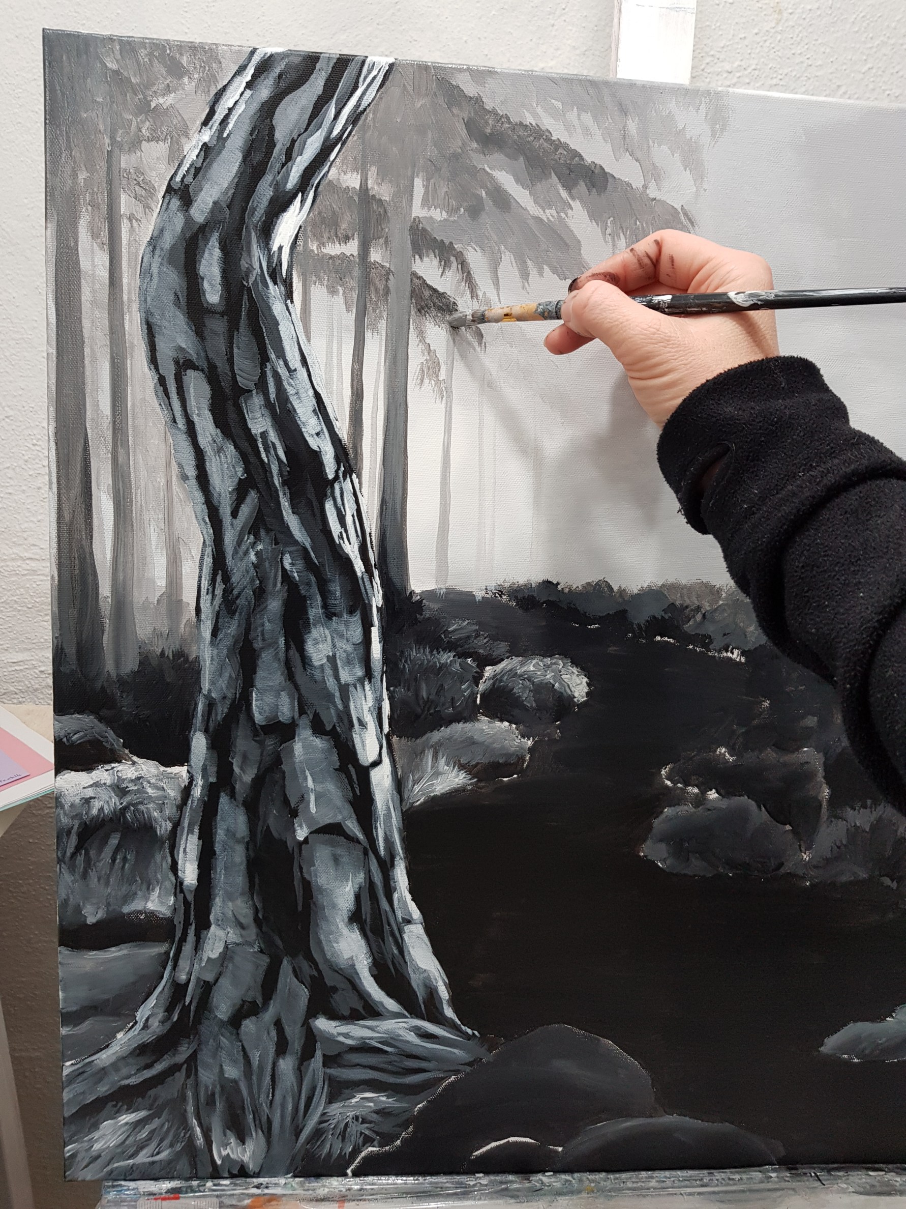 Jag vet inte om jag målat såhär fort nån gång som på denna. Det var så roligt. Men har man gjort något tusen gånger blir ju fingrarna oundvikligen flinkare bara av upprepningen. Jag har så svårt att sätta fingret på varför målandet är så roligt. Det är bara så otroligt tillfredställande, det går inte att beskriva. Jag skulle alltid välja penslar o färg framför en godispåse. O då gillar jag godis!