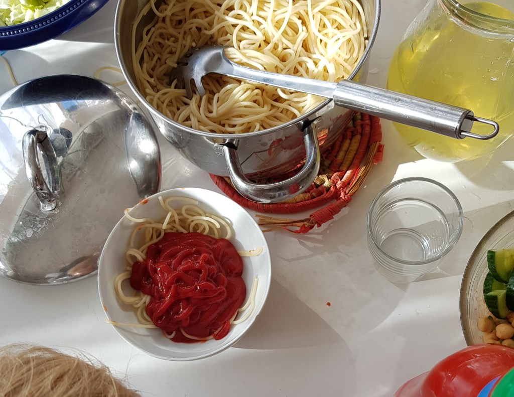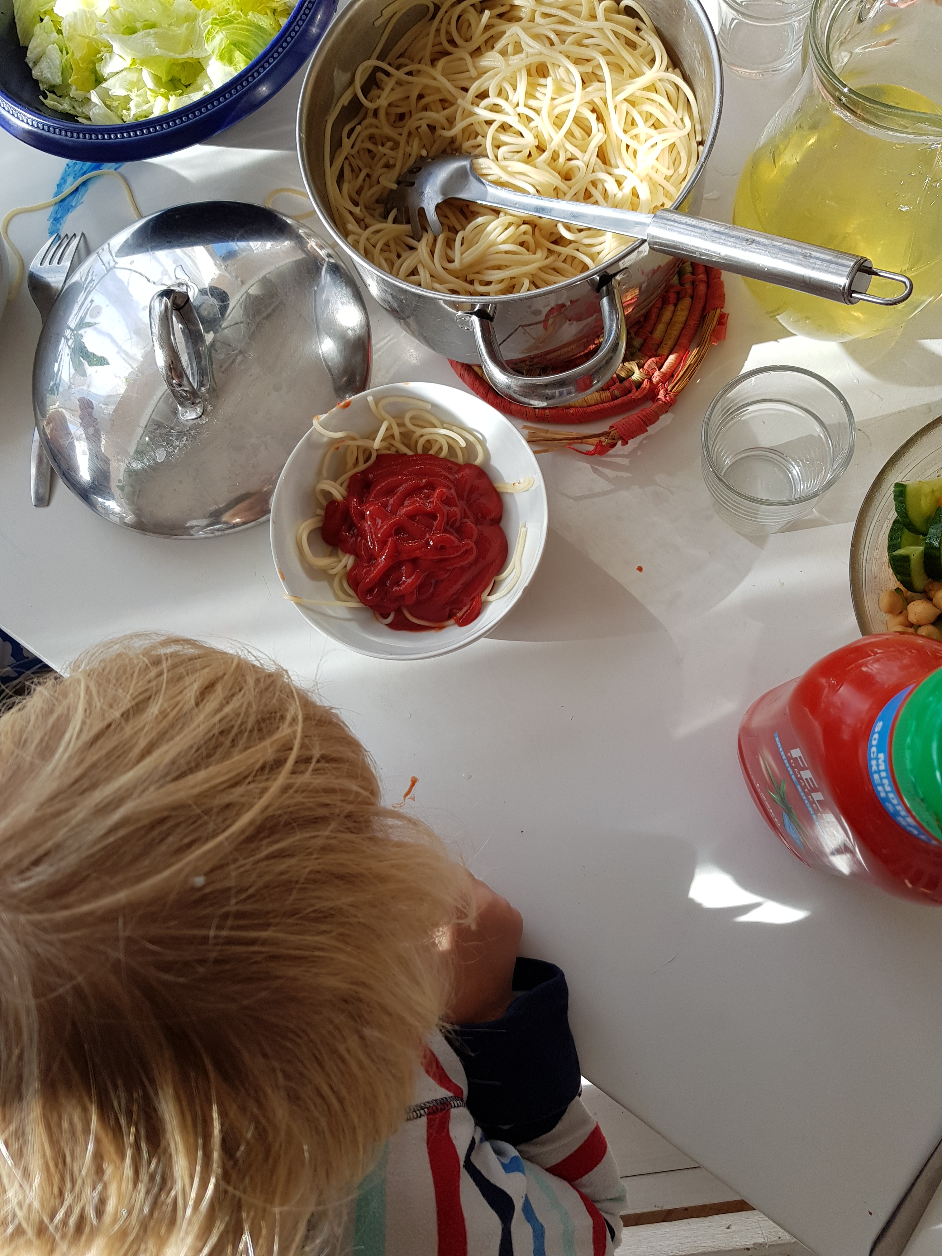 Idag skulle mellantjejen hälla ketchup själv medan jag hämtade en grej i köket…