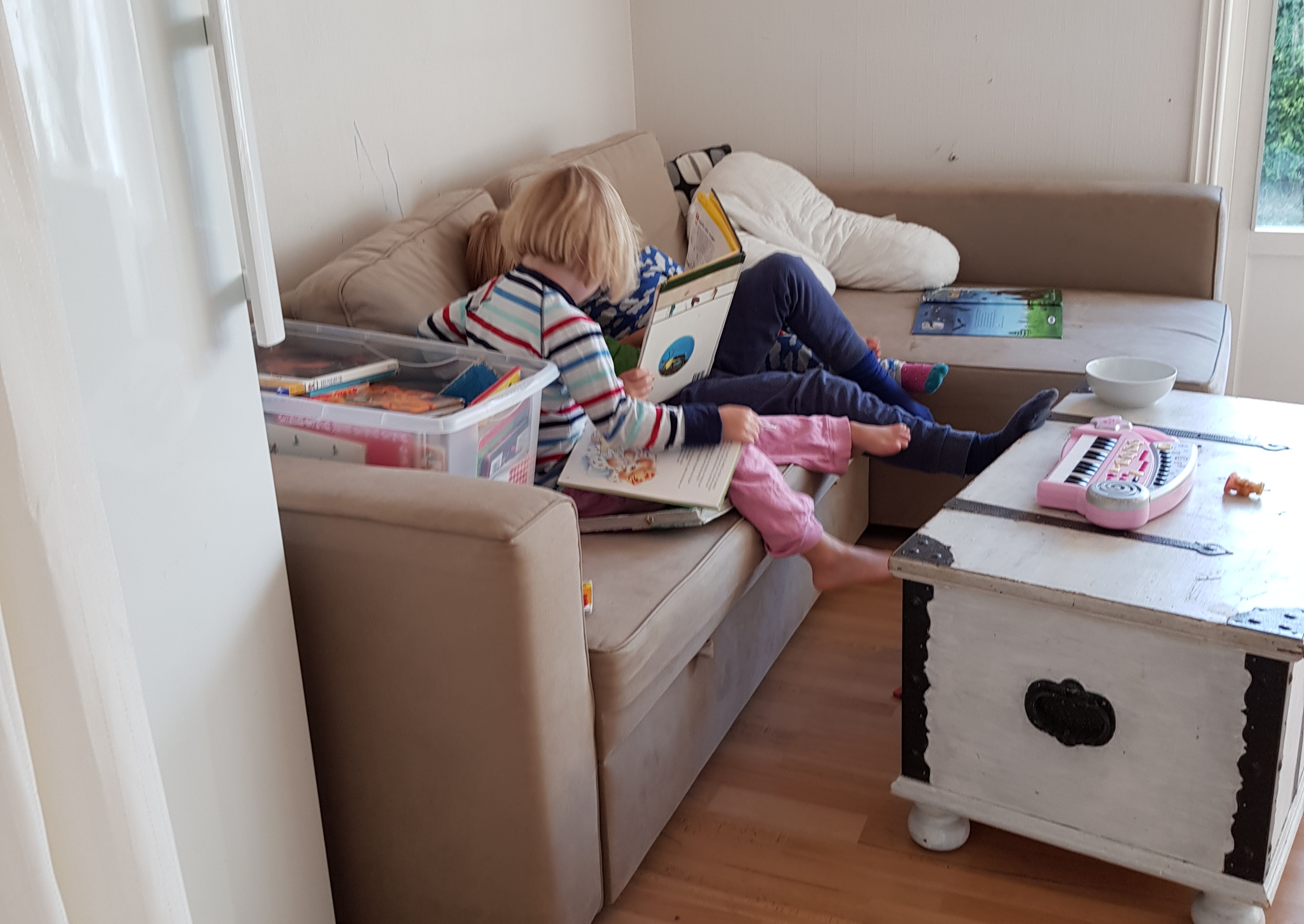 Idag myste dom länge i soffan med sina böcker. Minsta tjejen somnade nästan på storebror kl 17… Då får man va med i svängarna så det inte blir en tupplur en timme före läggdags!