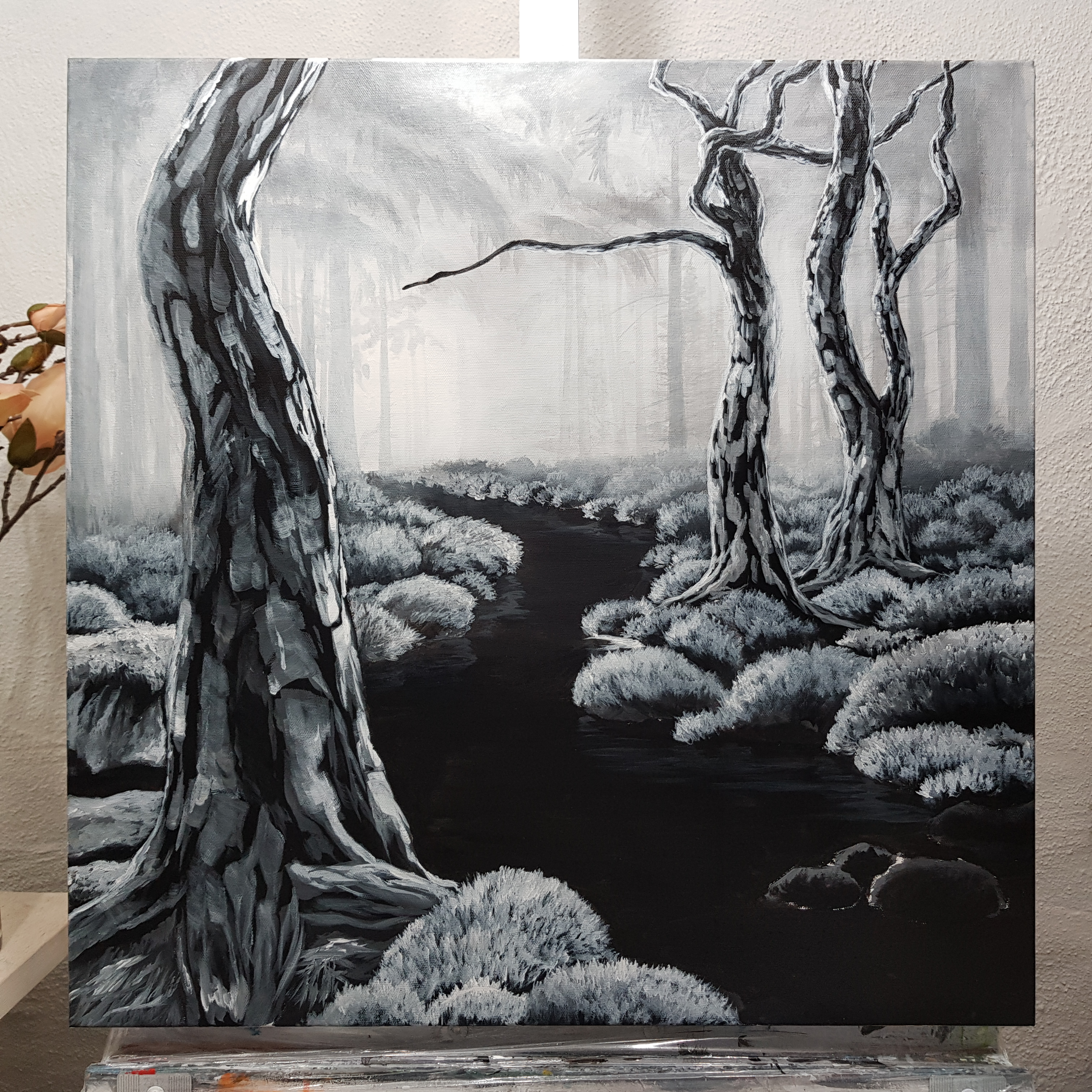 Såhär långt har jag kommit på denna nu 😊 ska måla lite till faktiskt precis nu. Hänger i studion med min man ikväll igen 💕 han läser o jag målar. 😊⭐🌜