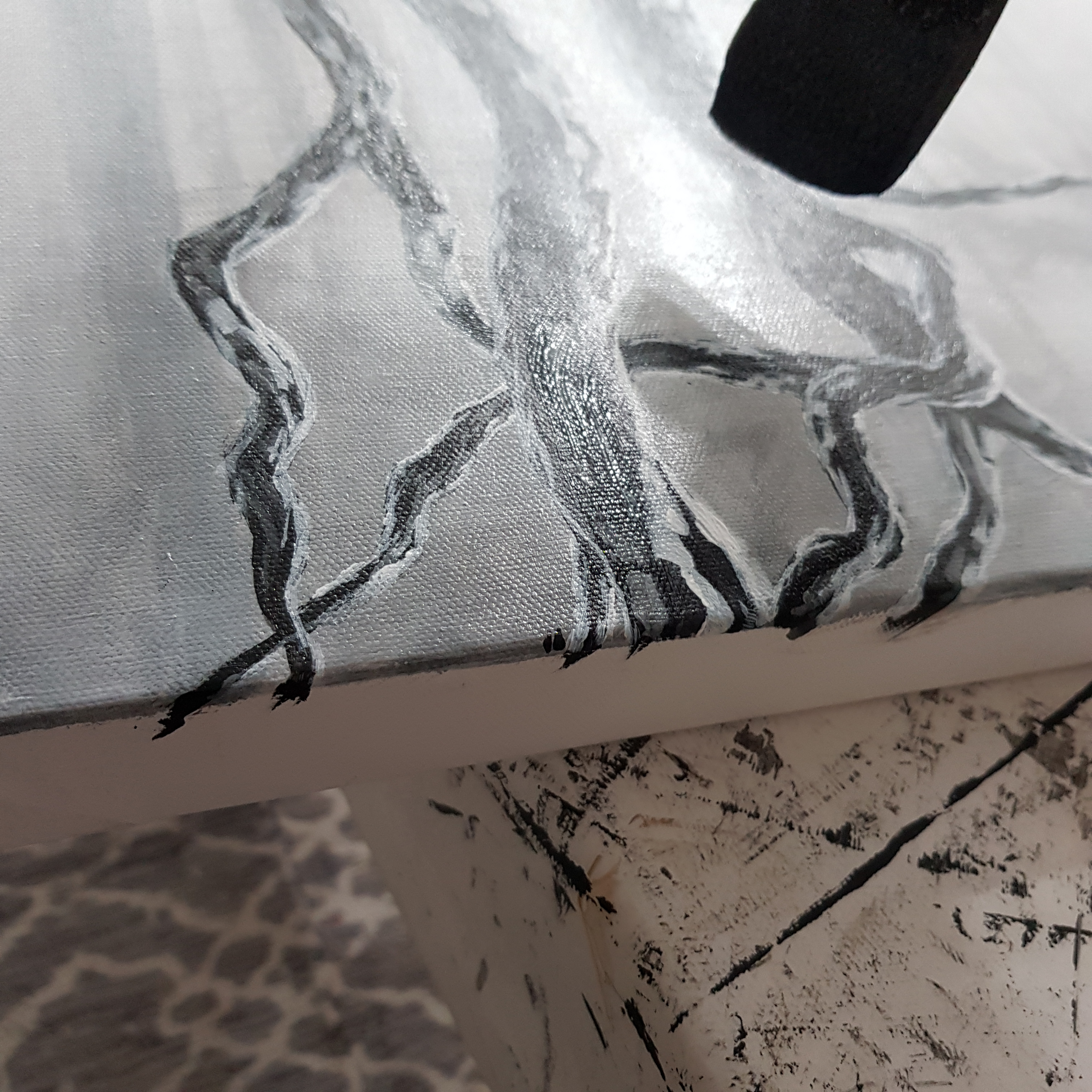 Medan det torkade började jag nästa så länge. Dessa två bilder som nu växer fram har jag ruvat på länge länge. Men jag vill ju inte säga för mkt i förväg, då blir det inte samma sak. Den första med hjorten handlar iaf om att hämta kraft, och den nedersta handlar om vila i stillhet och meditation.