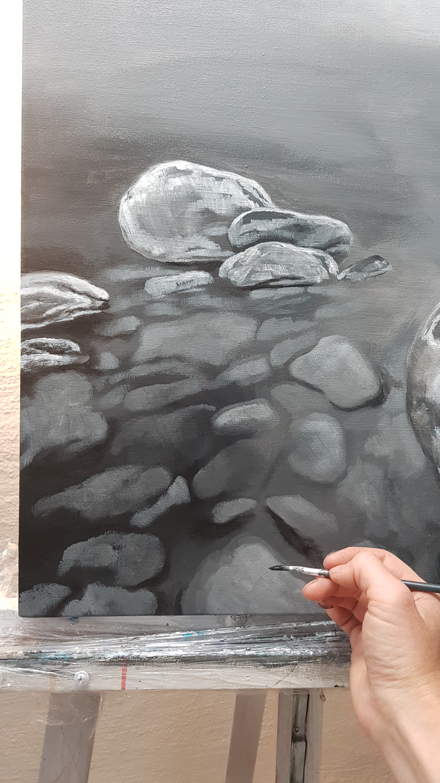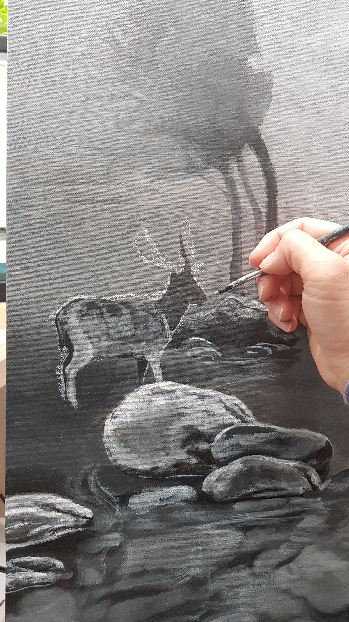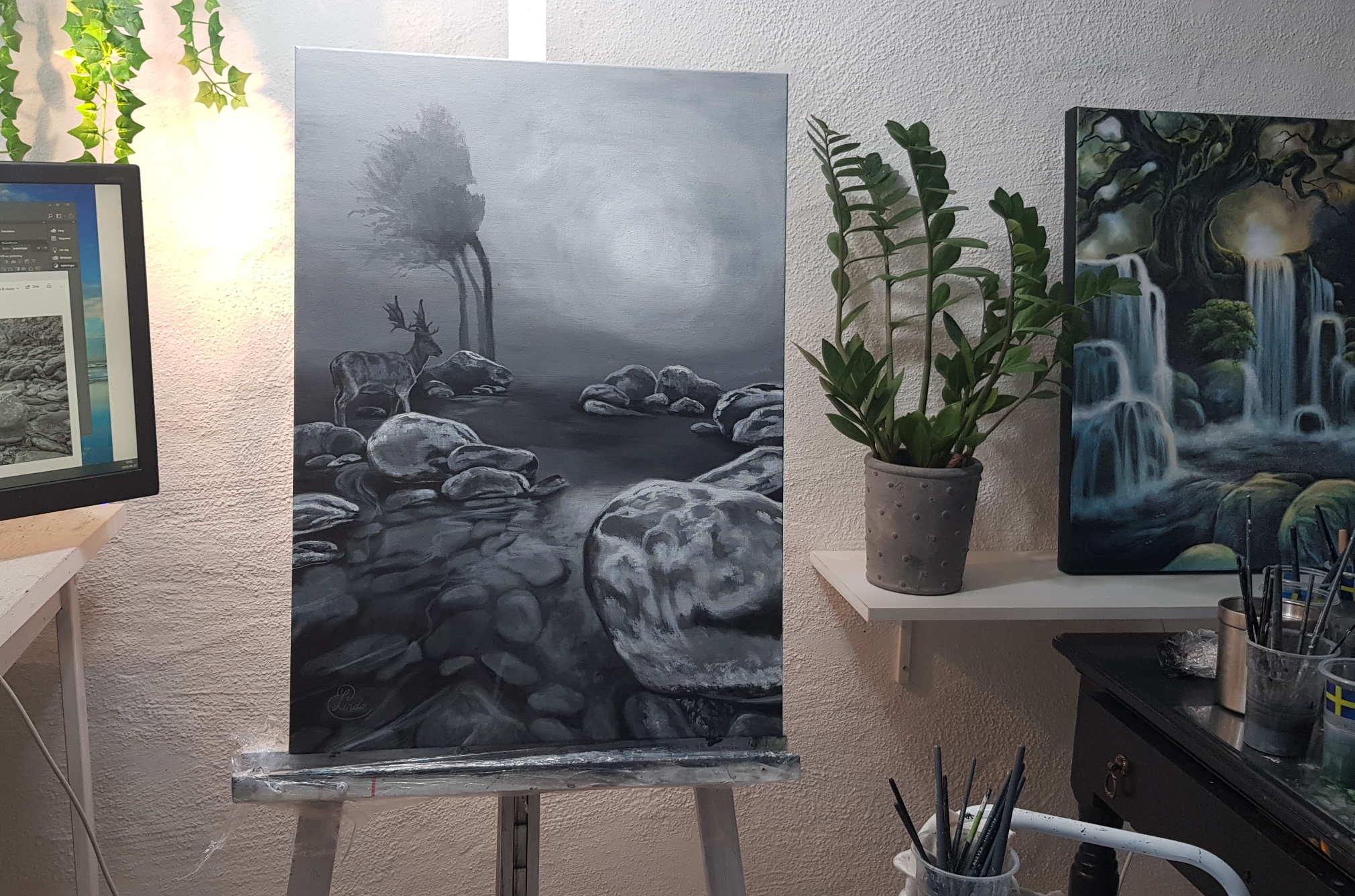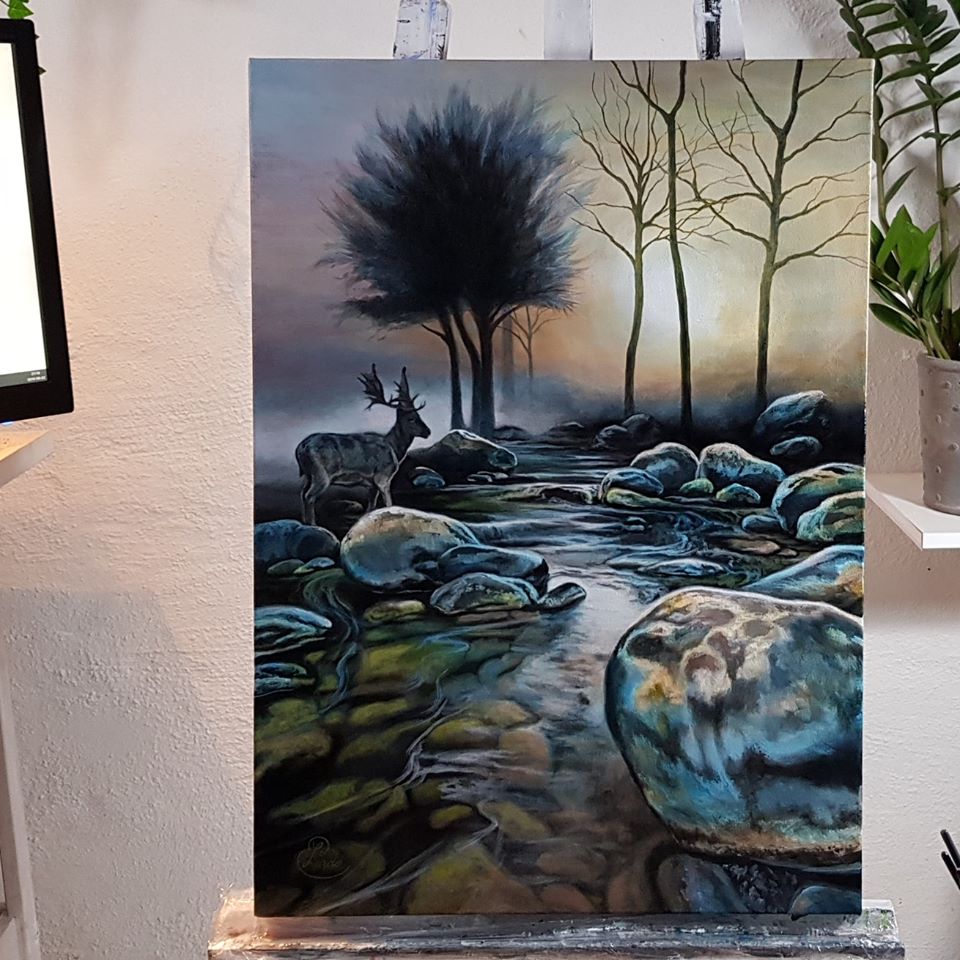 Här kommer en liten bildserie som jag har glömt att posta. Hittade utkastet nu. Det var längesen jag målade denna (originalet är sålt). Så nu postar jag den! (Akryl på canvas, 50×70 cm)