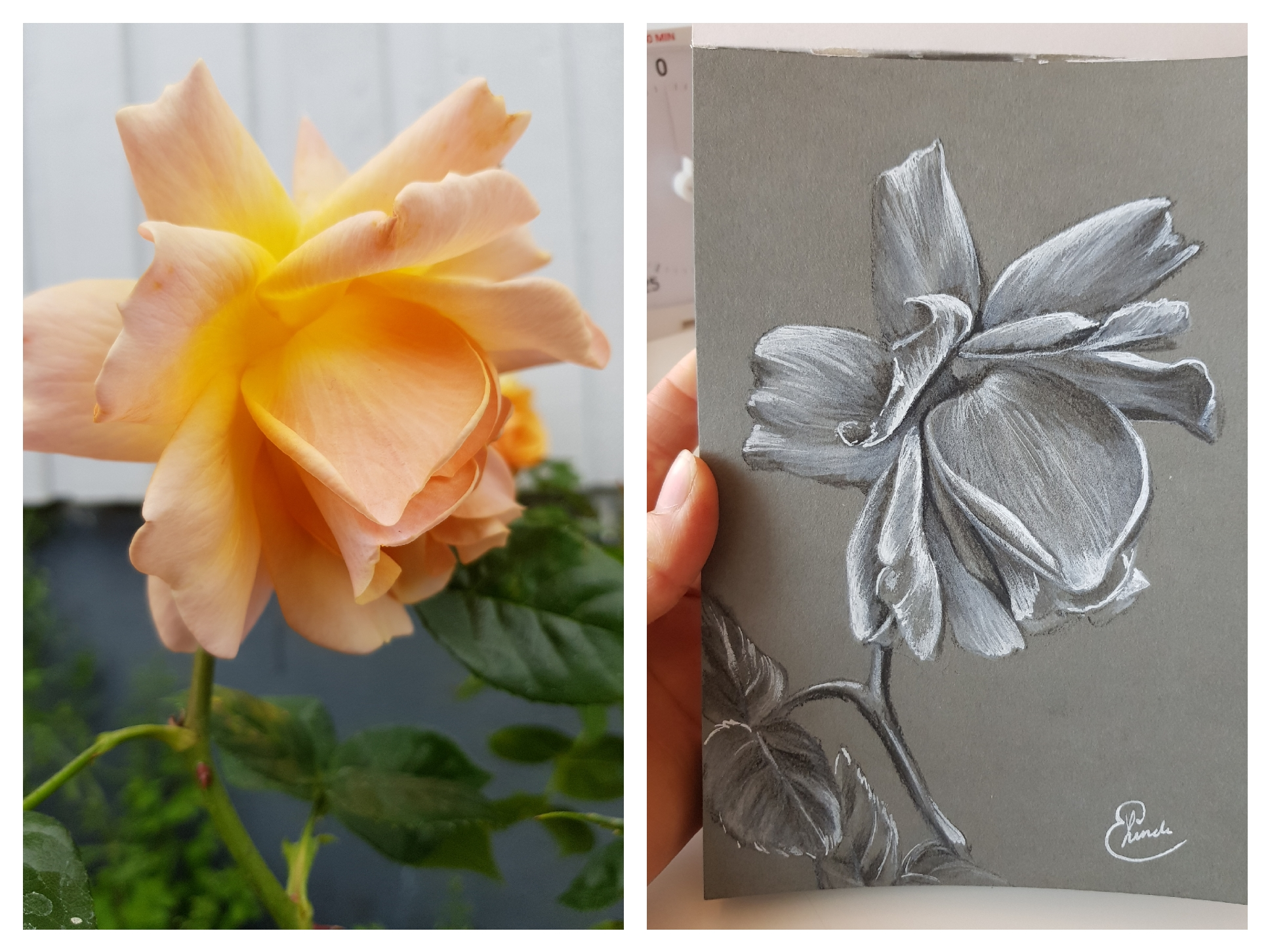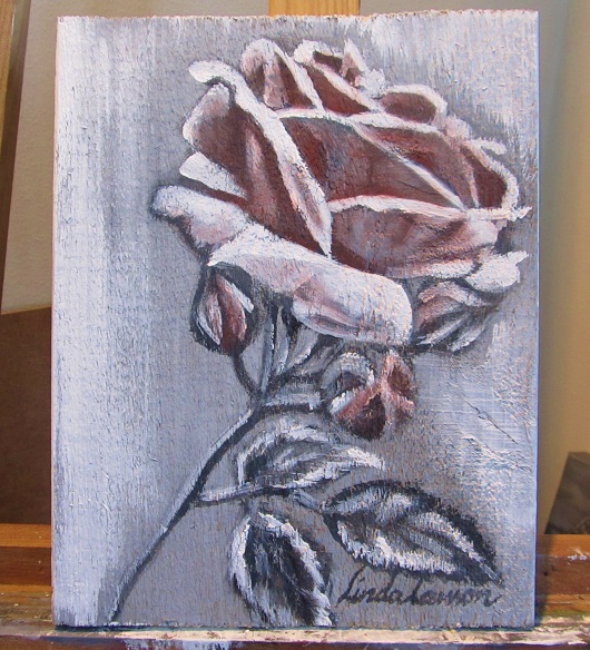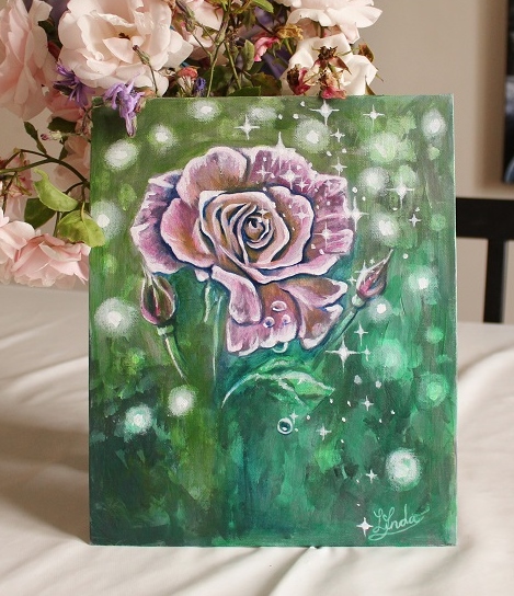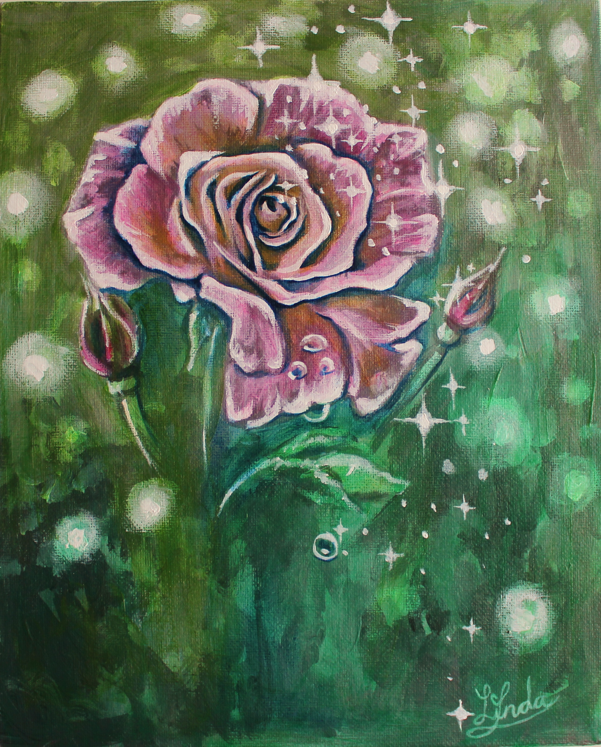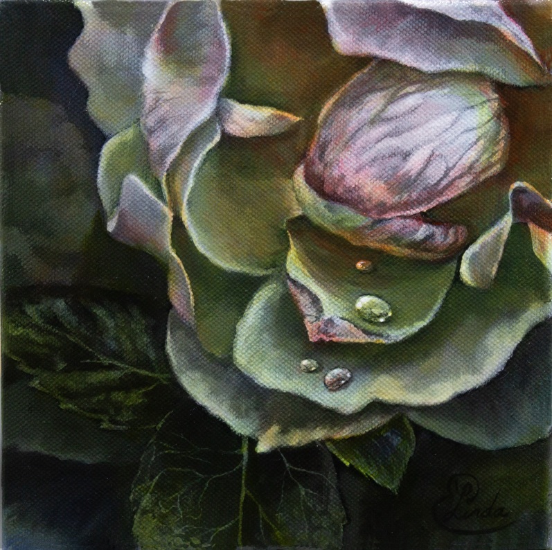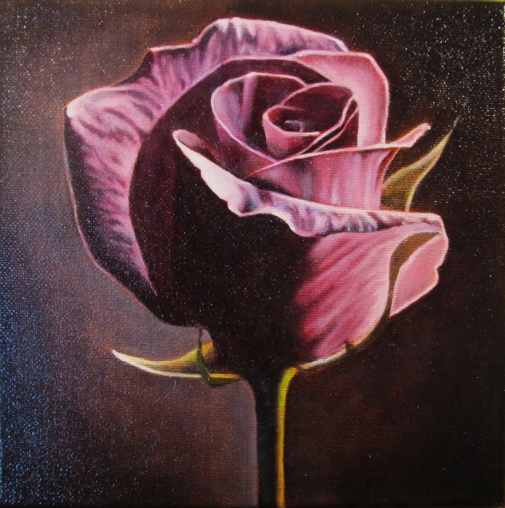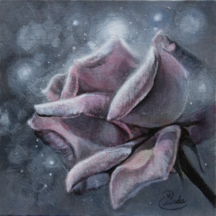 New Dawn ros, Akryl på DUKPANNÅ, 15 x 15 cm, 450 sek, kontakta mig vid intresse.