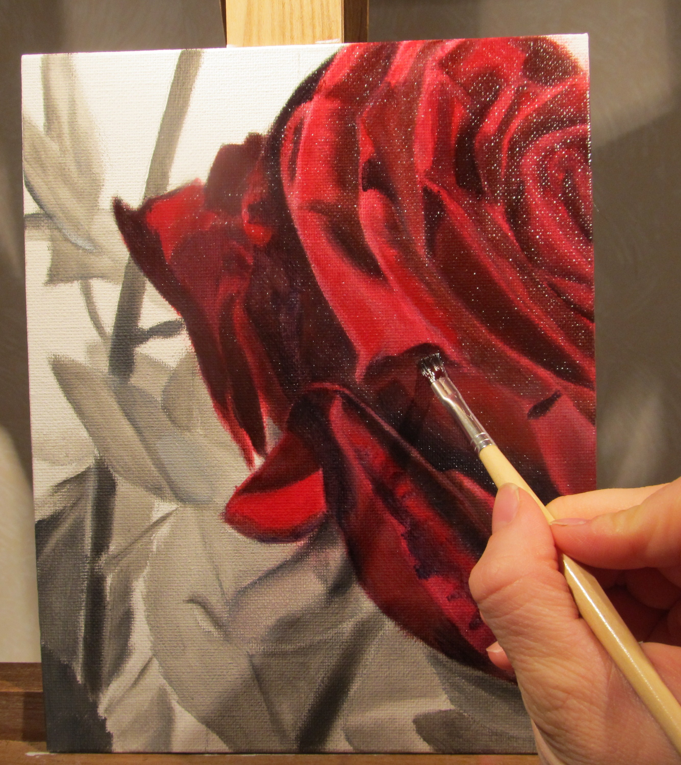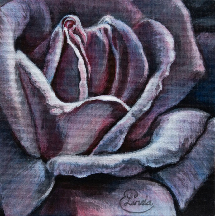 Närbild på ros, Akryl på DUKPANNÅ, 15 x 15 cm, kontakta mig vid intresse.