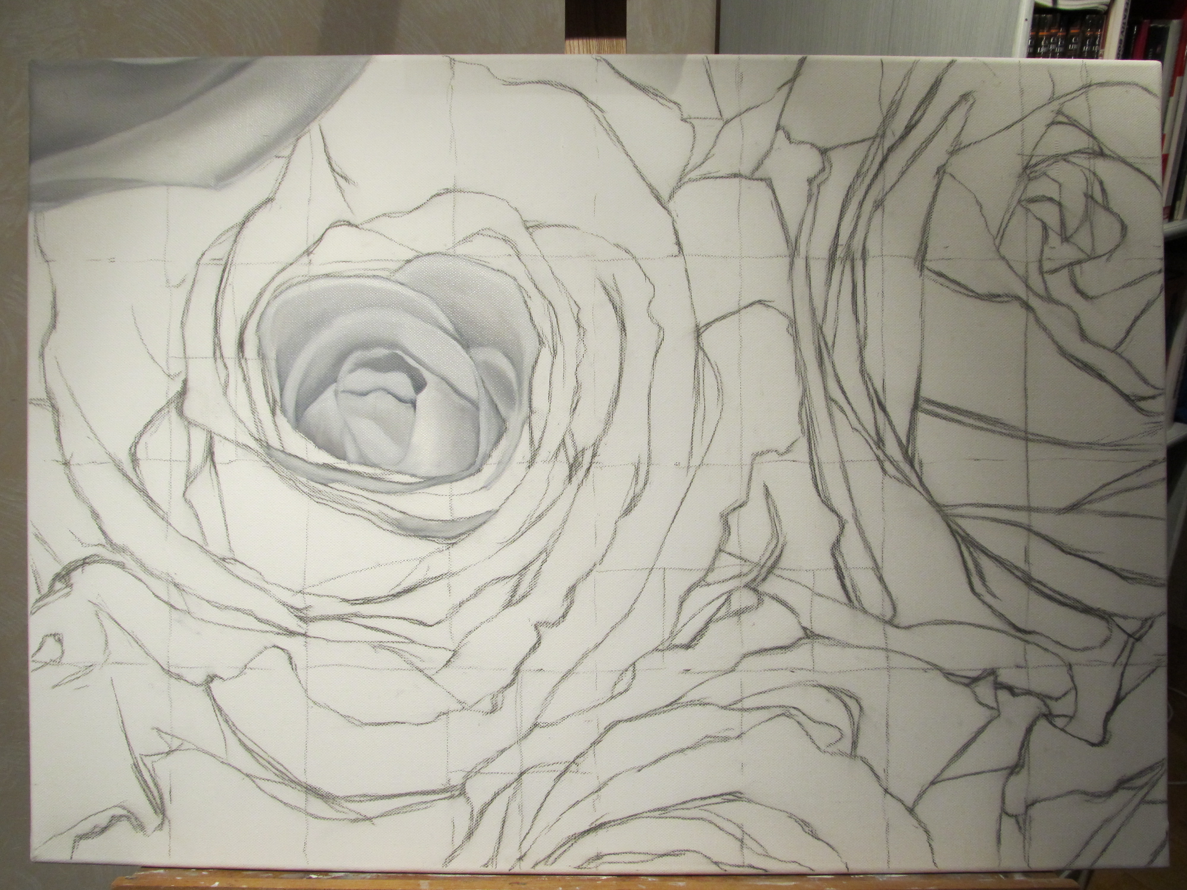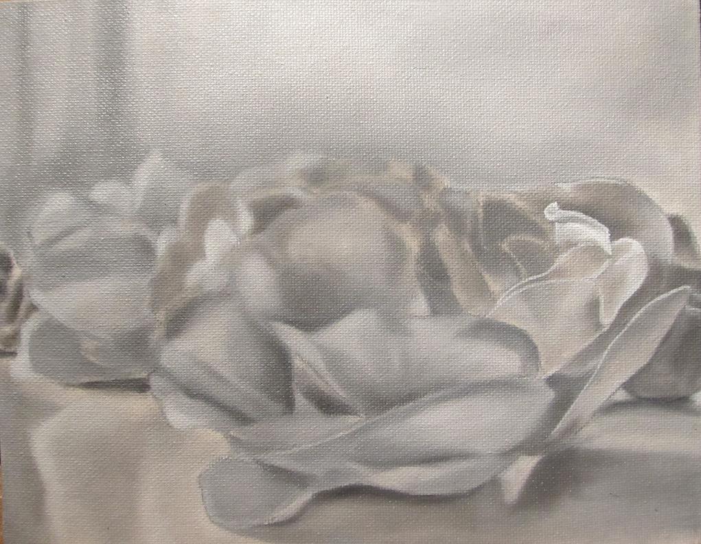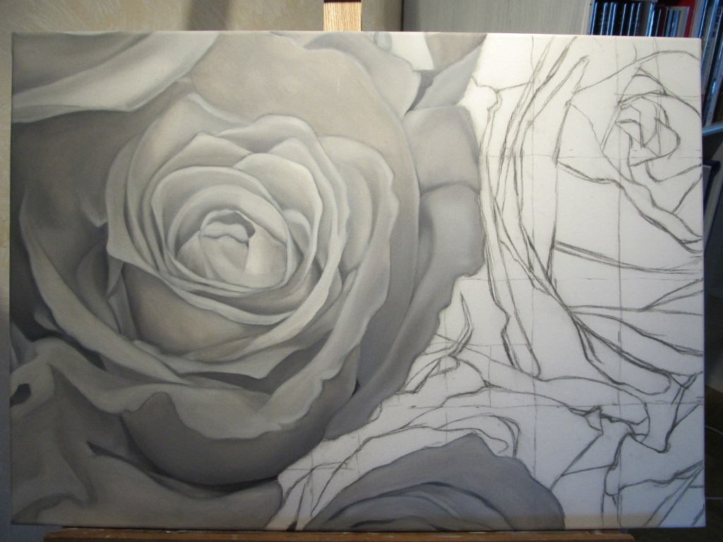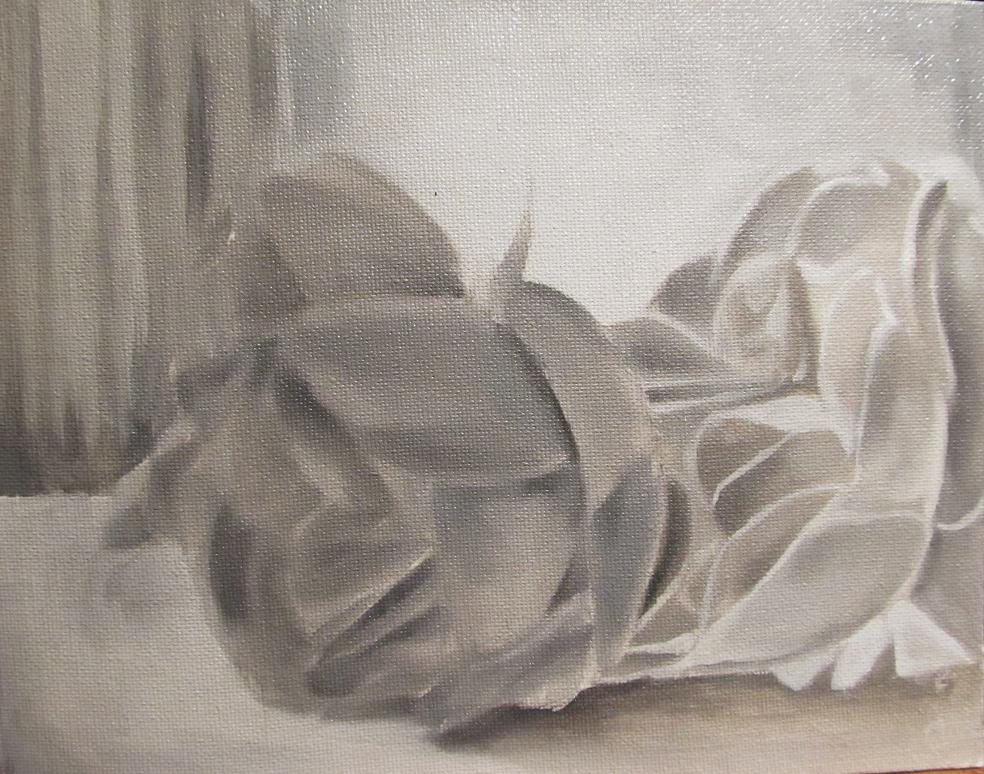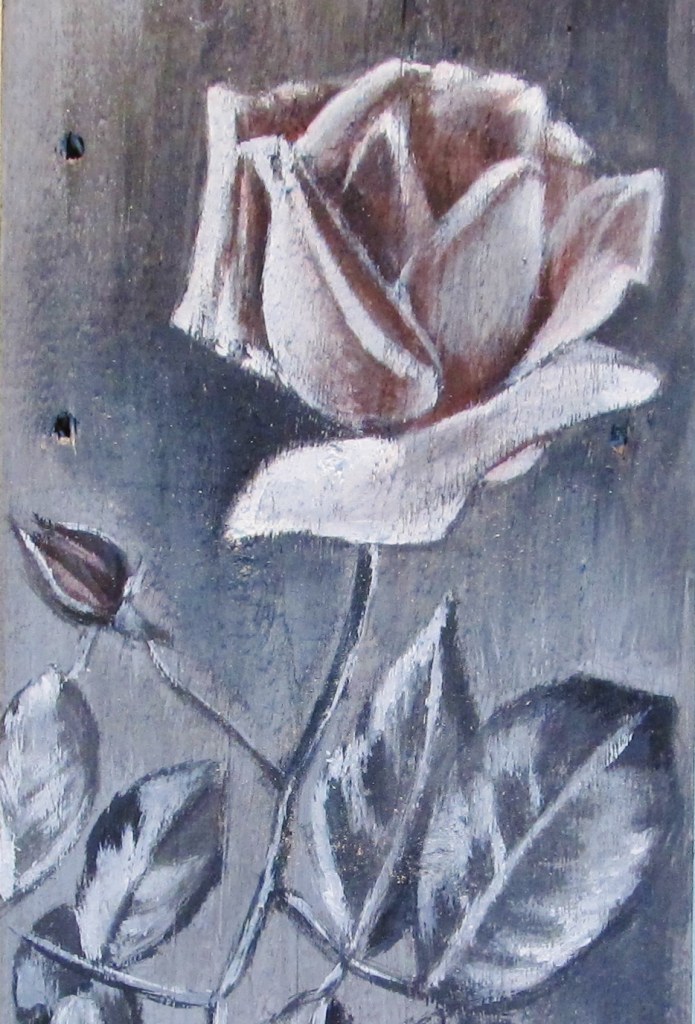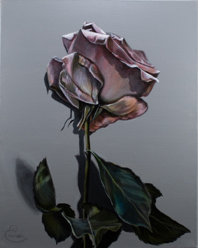 Ros mot ljusgrå bakgrund, Akryl på canvas, 40 x 50 cm, (4 cm djup/deep) Kontakta mig vid intresse