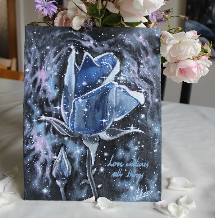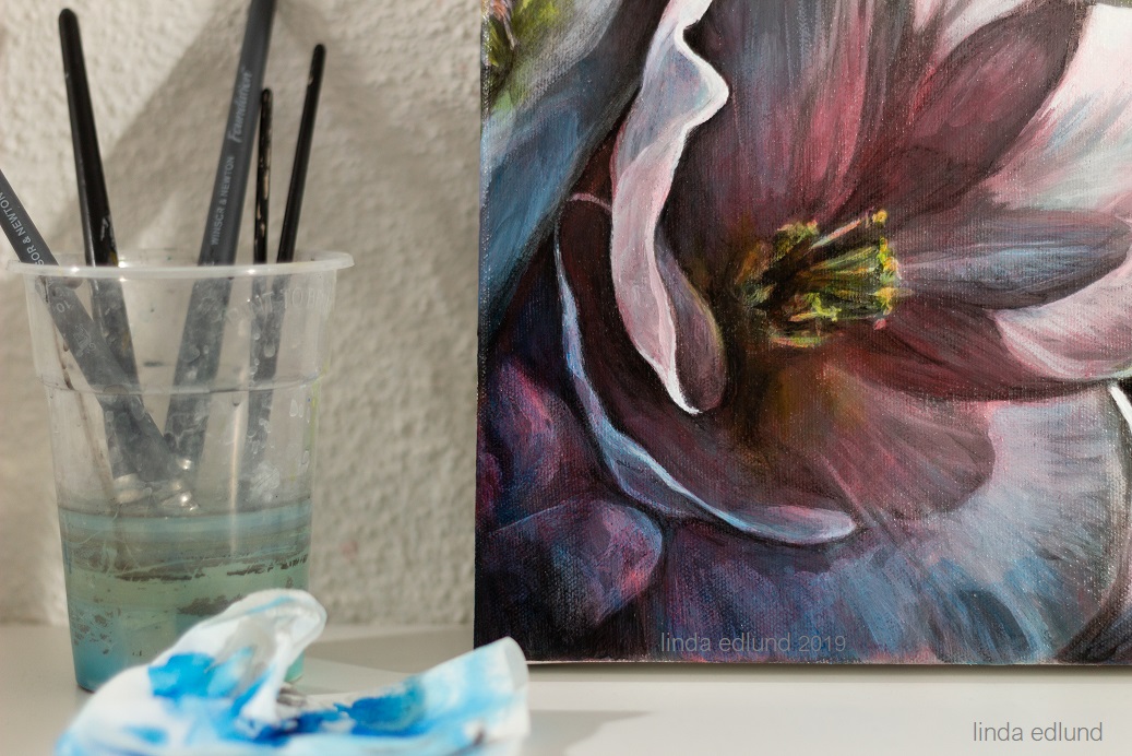 Wings of The DawnCream Rose”Love Endures All Things” 400 SEK, olja på dukpannå, 19 x 24 cm (strl x) cobolt blue & powder pink nebula”Love Endures All Things” , olja på dukpannå, 19 x 24 cm (strl x) cobolt blue & powder pink nebula”Sparkling Rain” (500 SEK för denna storlek, 22 x 27 cm), akryl på dukpannå”Purple drops”, (ca 1000 SEK för denna storlek – 20×60 cm) oil on canvas, (Closeup to the right) “Ljushylla #1″ 49×17 cm (djup hyllplan 11 cm) 300 kr“Ros 300614″ Akryl på grovt trä, 19 x 25 cm, 300 kr”Love Endures All Things” (1 Kor 13:7) Akryl och olja på dukpannå, 19×24 cm, 300 kr”Alazarin Velvet” 1900 SEK Oil on canvas, 50×50 cm,”Glädje” (”Joy”) 1500 SEK Oil on canvas, 40×40 cm, HarmonyFinns ej kvarAdderar lite mörkare grå på vissa partier.Börjat skissa upp motivet in olja med en mörkgrå ton på en mellangrå, torr bakgrund.Gone”Orchid” Oil on panel, 19×24 (?) cm, 300 kr”Reflection” olja på dukpannå, 19×24 cm, 300 kr”Grace” olja på dukpannå, 19×24 cm, 300 krFinns ej kvar”Pink Peony” 800 SEK, oil on canvas, 34x30cm, ”Magnolia” 800 SEK, oil on canvas, 30×24,5×1,5 cm”Purple Dream” 20×20 cm, 300 kr”White Rose”, oil on canvas, 20x20x1.5 cm, 300 krPurple Swirls
