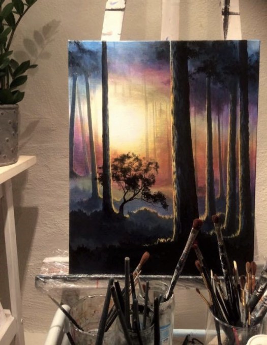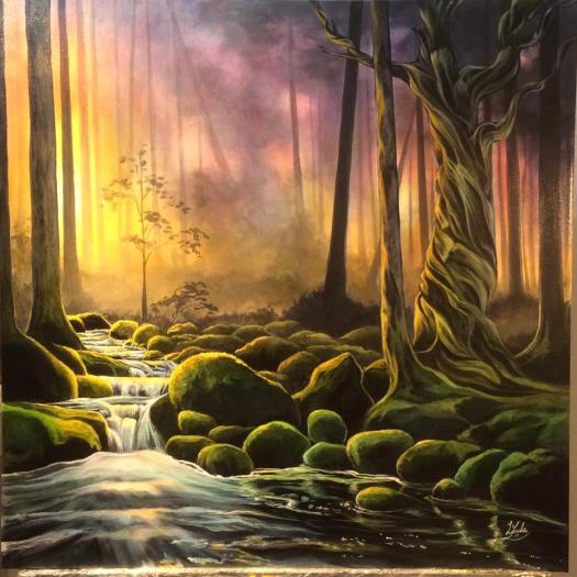 Solnedgång på Spraglehall, Original Akryl på Canvas, 40 x 40 cm, Kontakta mig vid intresse.