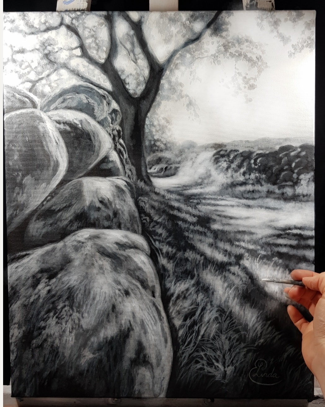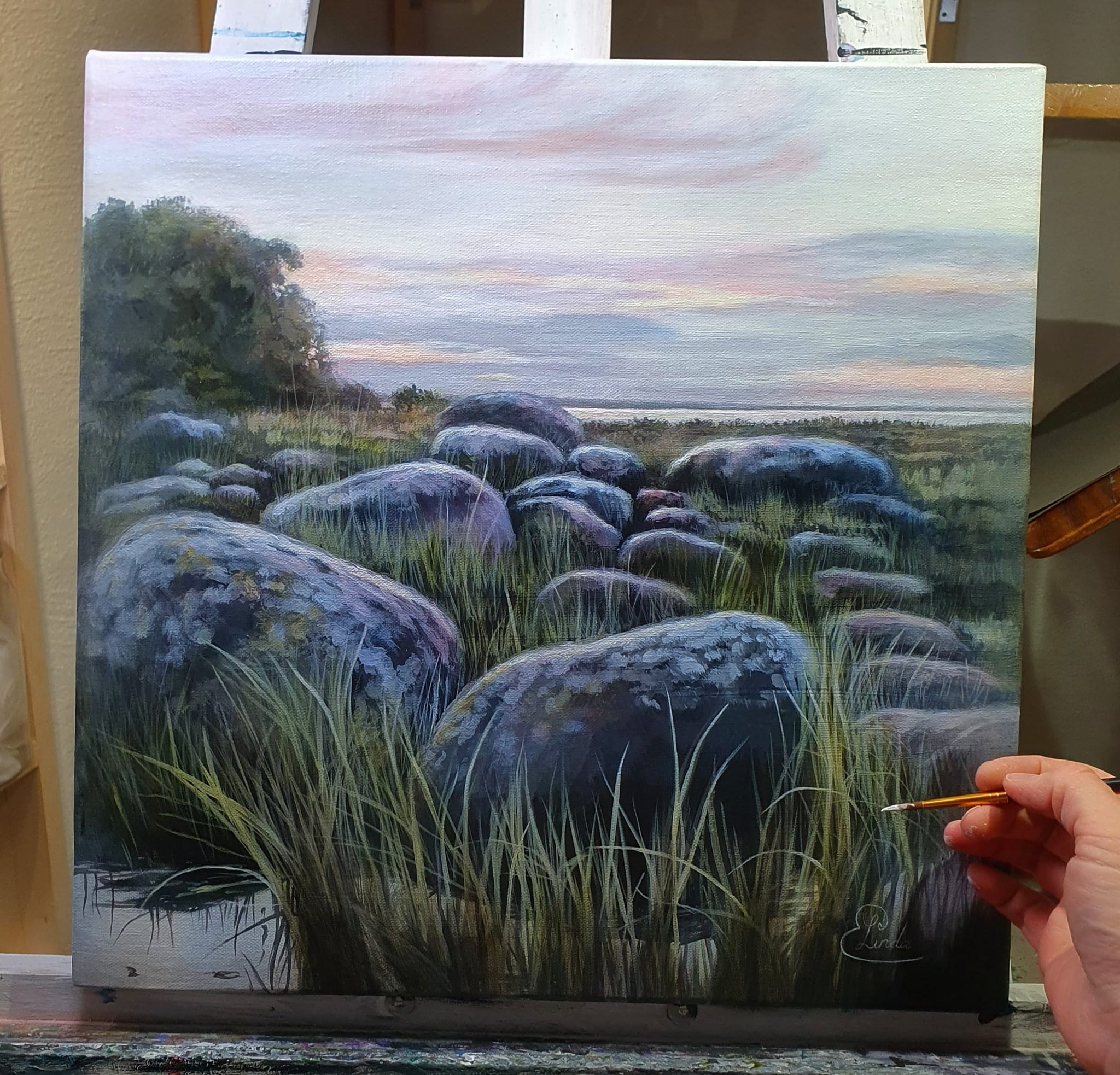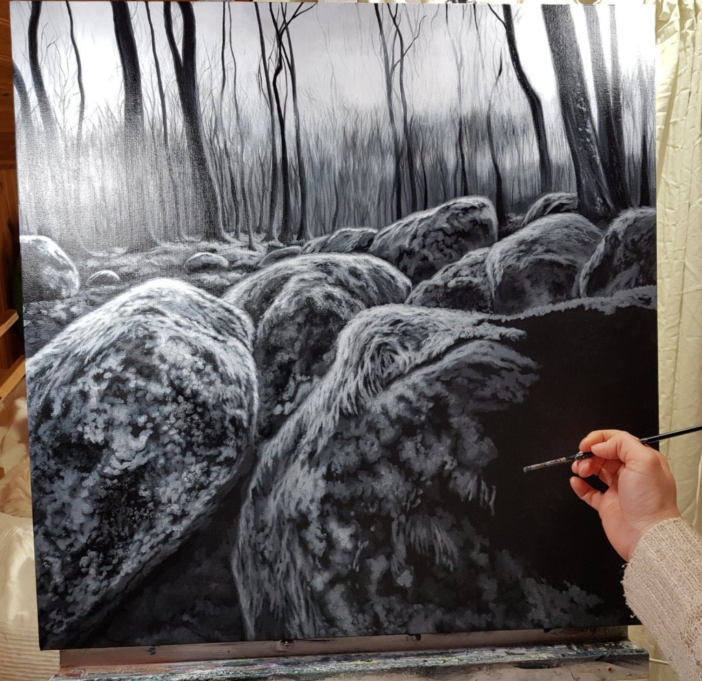 Mossiga Stenar på Getabjär – Original Akryl på Canvas, 60 x 60 cm , Kontakta mig vid intresse.